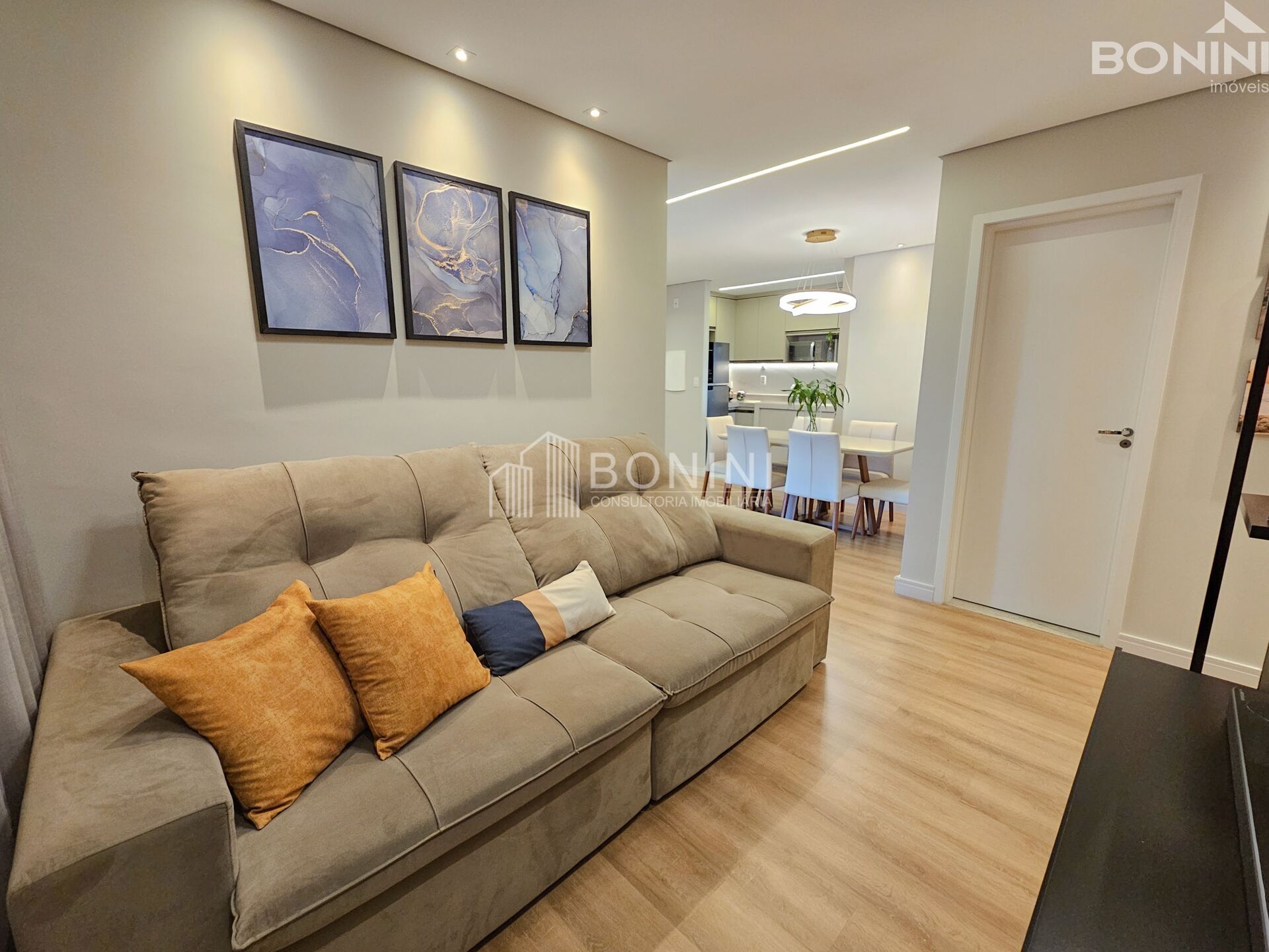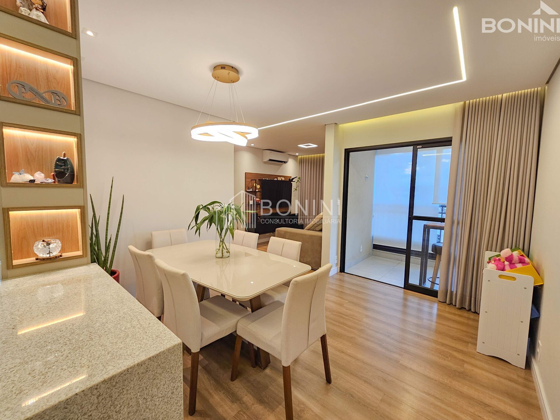 2 dormitórios, sendo 1 suíte com planejados, sala estendida (3 dormitório) tv integrada com sala de jantar ampla, cozinha comtoda planejada com cooktop, coifa e forno, banheiro social, varanda com churrasqueira a gás fechada com persianas de vidro.