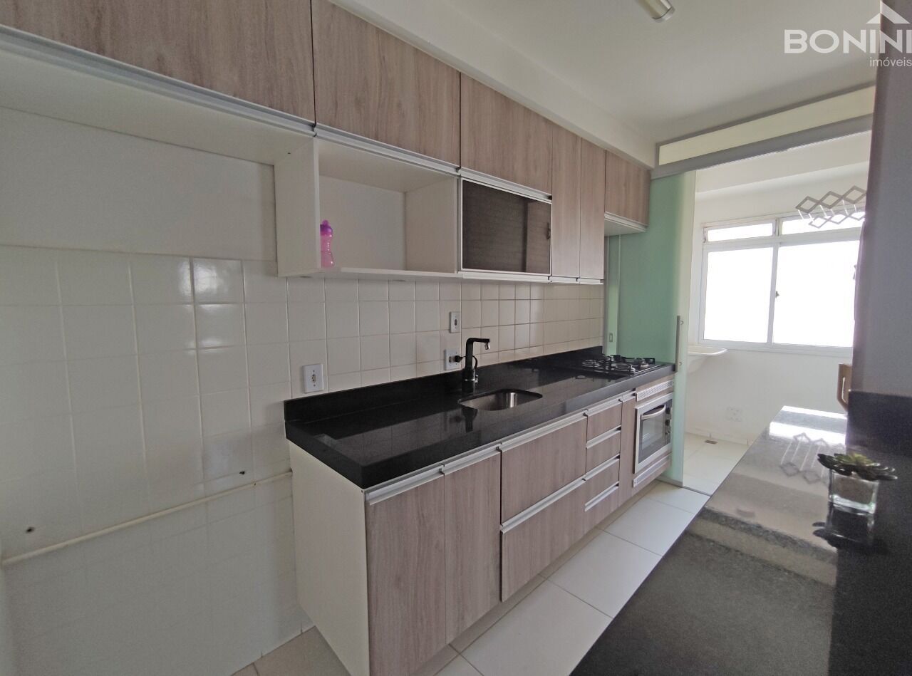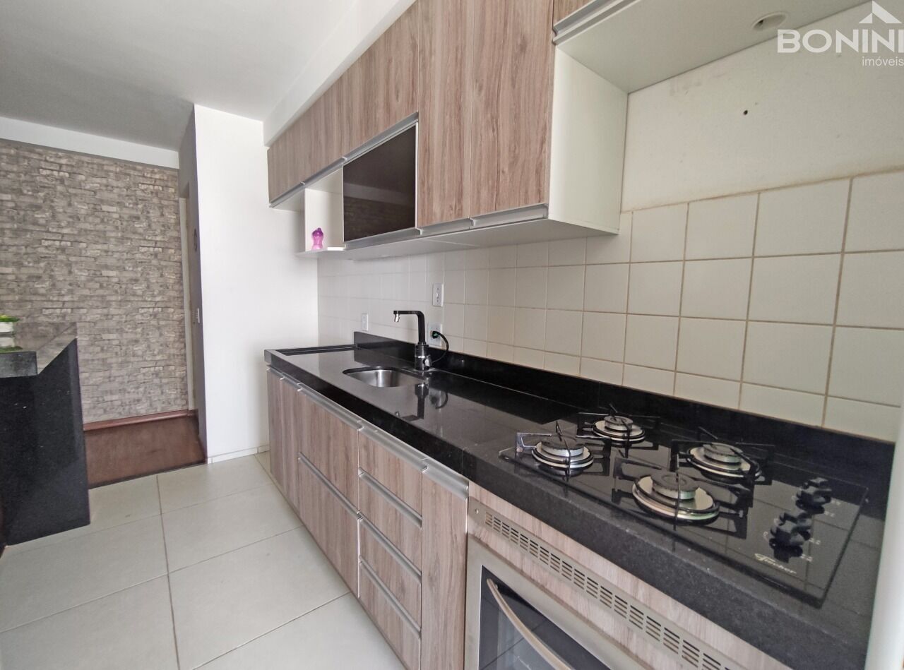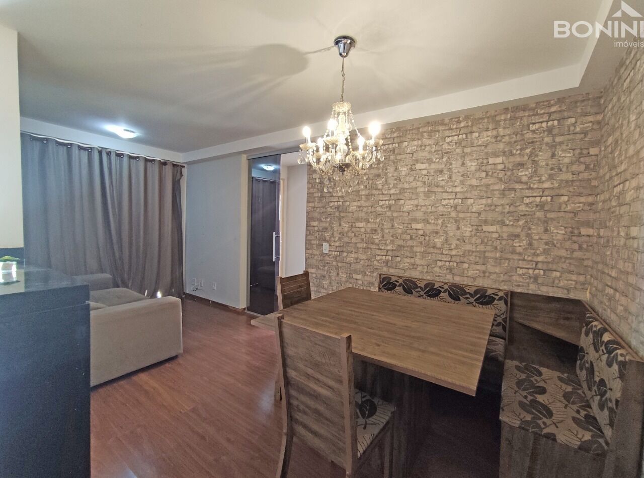 2 quartos, sendo 1 suíte, banheiro social com armário e box, sala de tv e jantar, sacada, cozinha planejada, área de serviço com porta blindex, piso cerâmica e laminado, 1 garagem coberta.