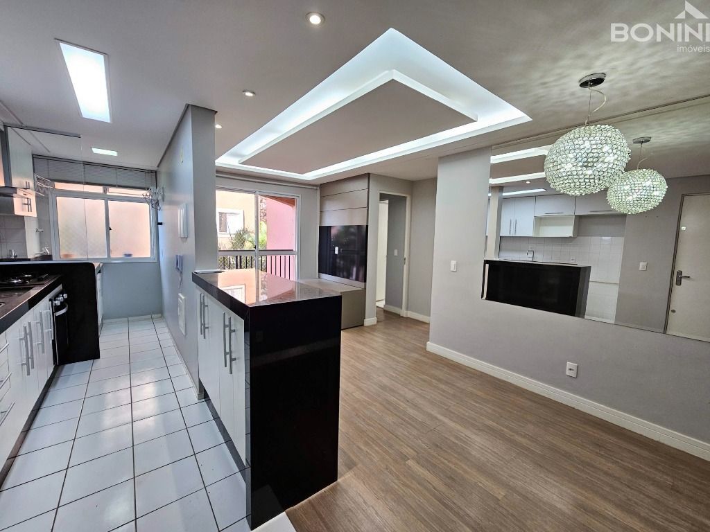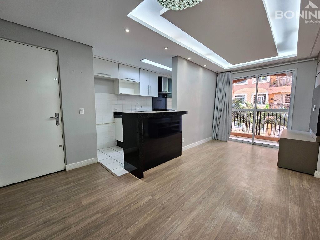 2 dormitórios, sendo 1 suíte, cozinha completa com cooktop, forno e coifa, sala de jantar, sala de tv com painel tv e sacada vista jardim, banheiro social, área de serviço e 1 garagem coberta.