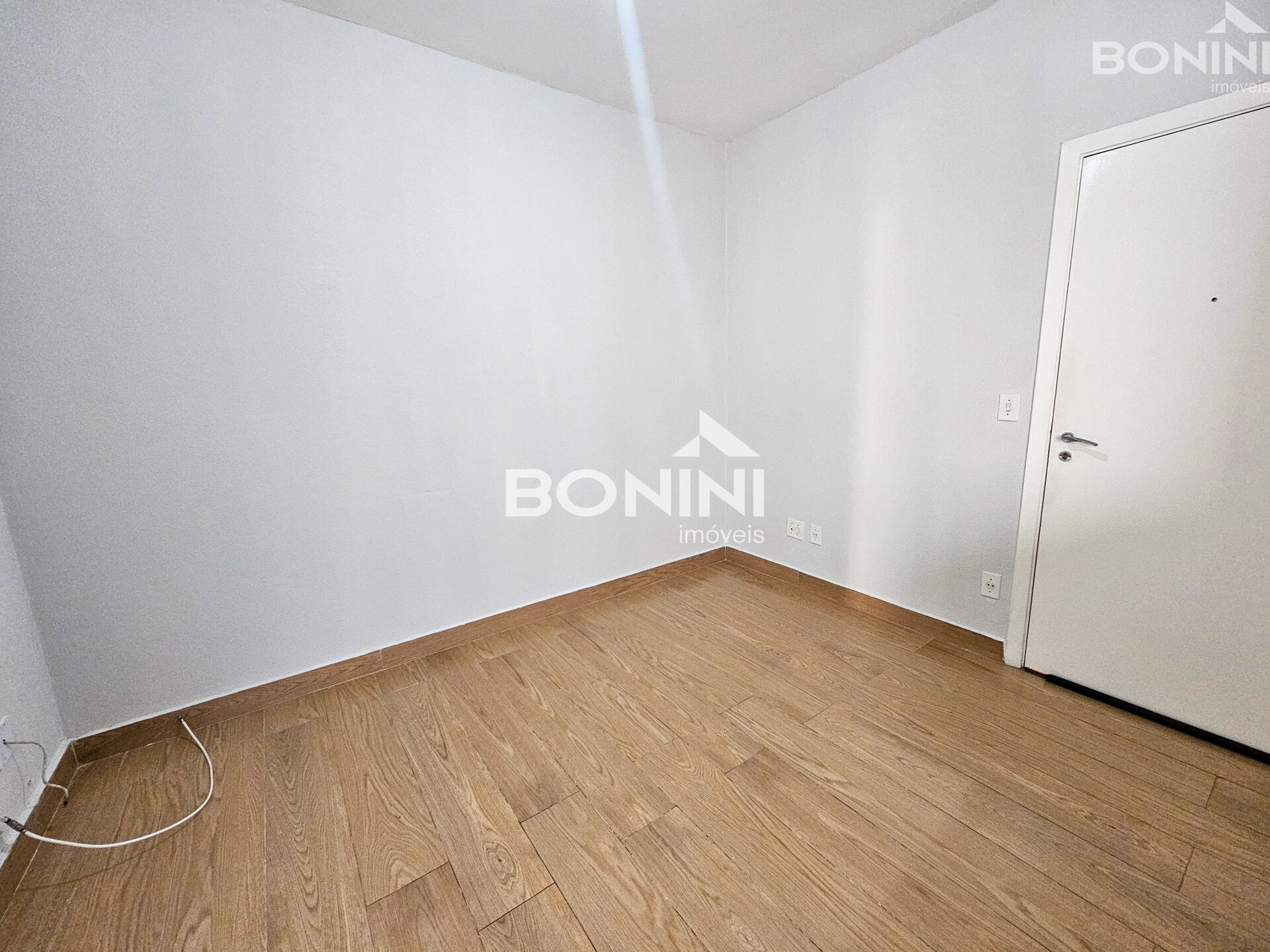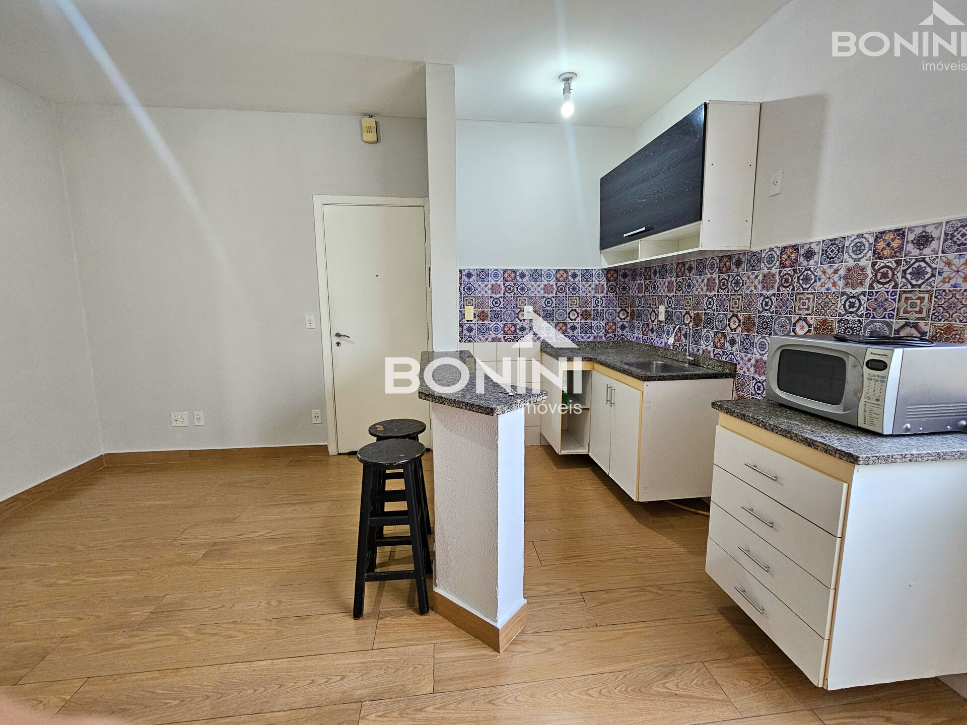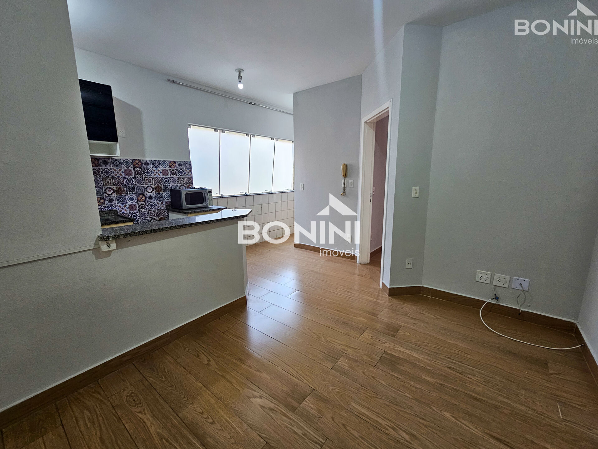 Apartamento com 1 suite, sala 2 ambientes, cozinha e 1 vaga de garagem coberta com portão eletrônico. Armários no dormitório e cozinha, rack na sala, box e gabinete no banheiro