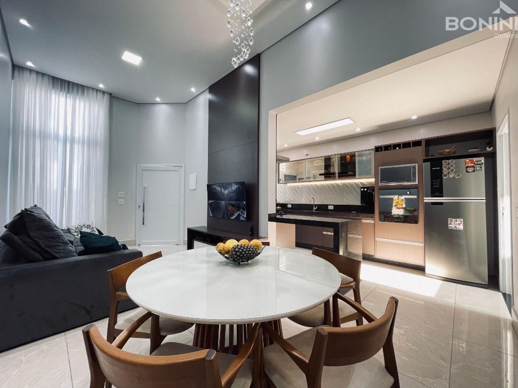 CASA À VENDA COM ACABAMENTO IMPECÁVEL!!!!São 3 dormitórios sendo 1 suíte, ambientes integrados, área de serviço, área de luz, banheiro social, área gourmet com pia e churrasqueira, 2 vagas de garagem.O imóvel possui fino acabamento, piso em porcelanato, armários planejados em todos os ambientes, ar condicionado inverter, interfone, alarme, câmera de segurança, cerca elétrica, infraestrutura para água quente, torneiras monocomando, portão automático, portas e janelas em alumínio, na cozinha cooktop, coifa e cortina na sala de TV.Localização excelente no bairro! Documentação ok para financiamento!Agende hoje mesmo seu atendimento!