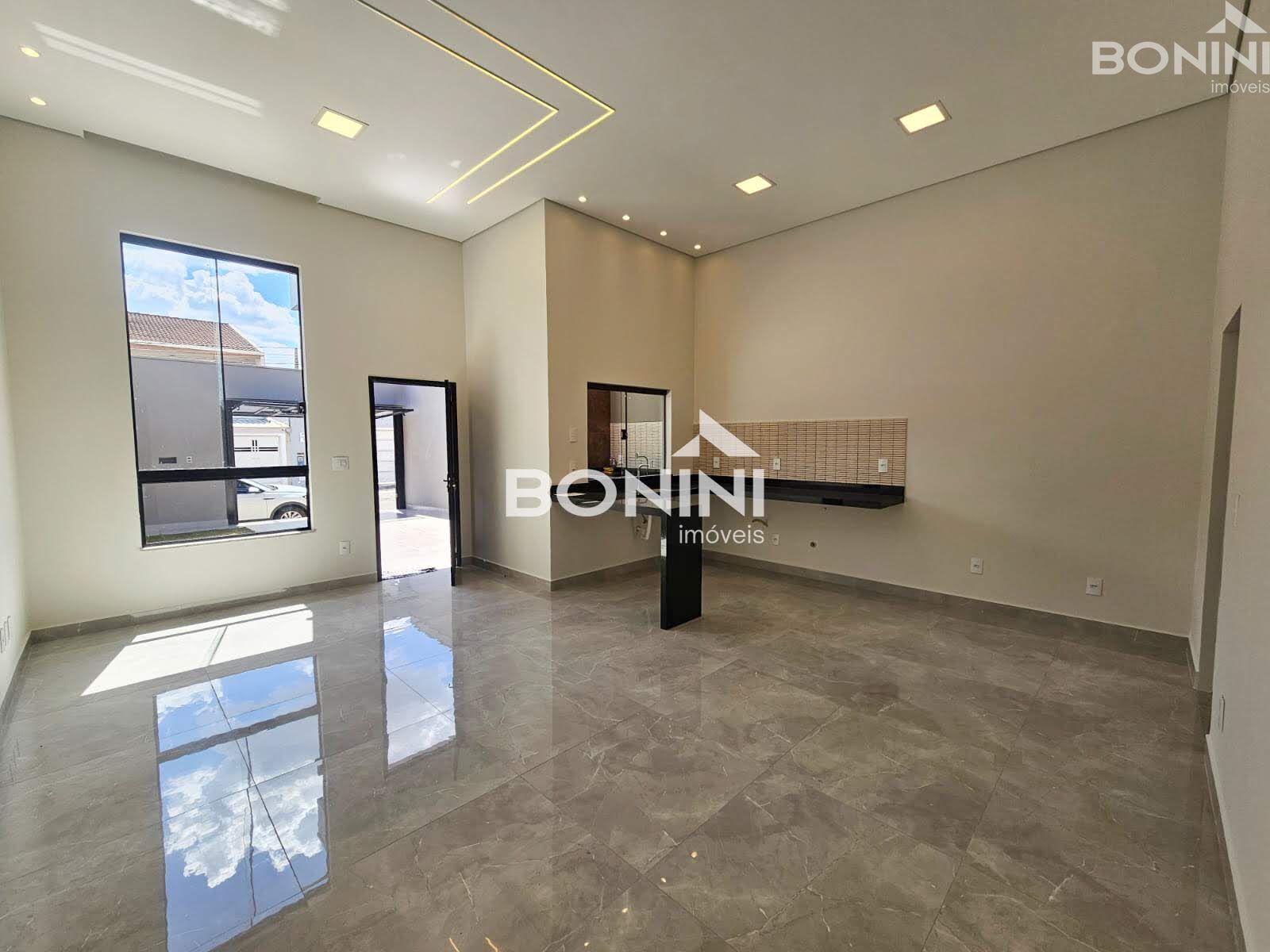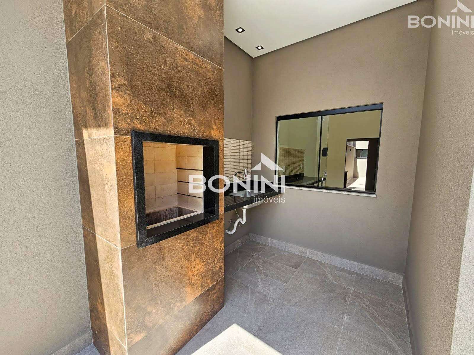 3 quartos, sendo 1 suíte, banheiro social, sala de tv e jantar ampla com pé direito alto, cozinha integrada, churrasqueira, quintal, área de serviço, garagem para 3 carros, piso em porcelanato.