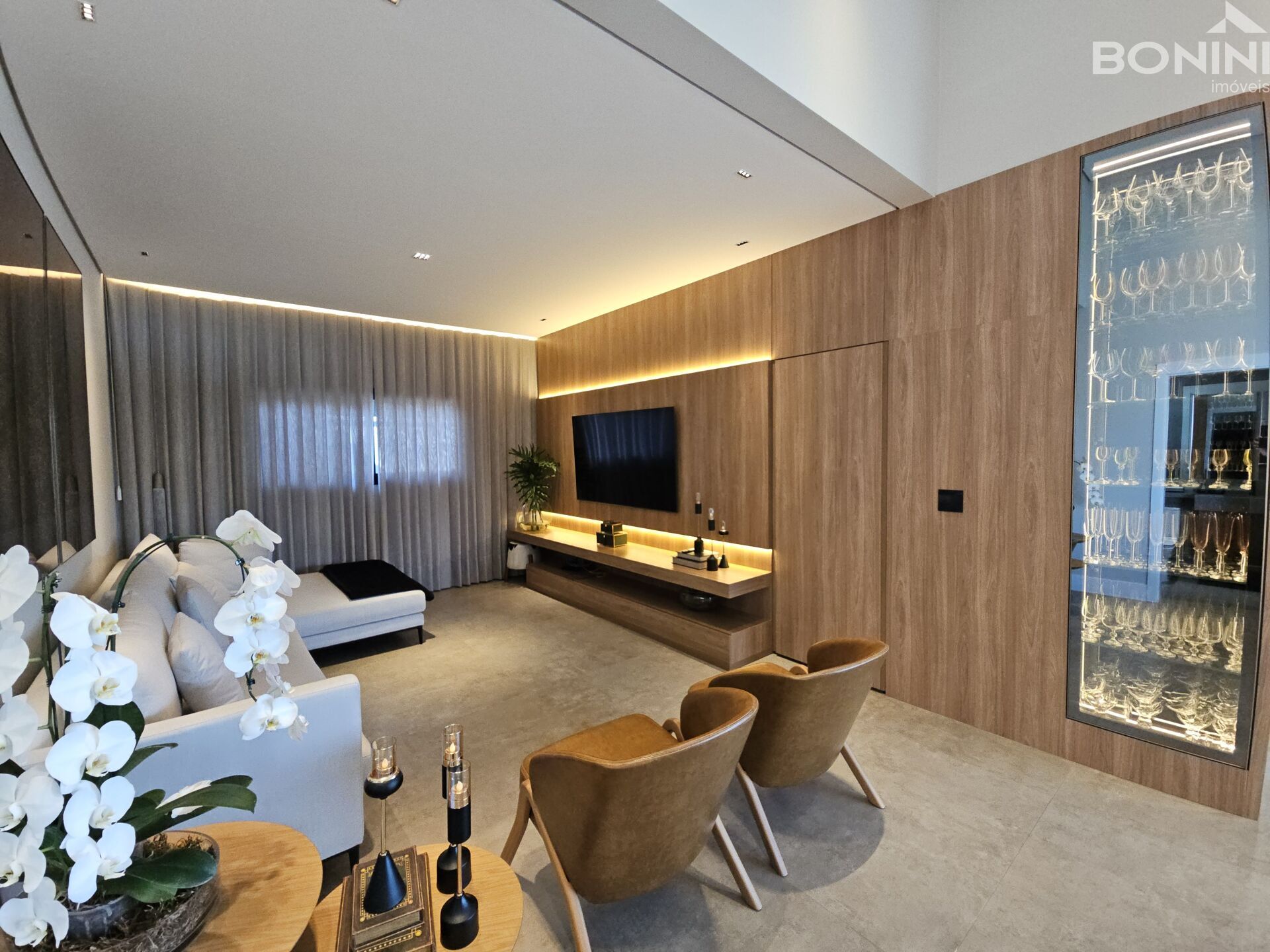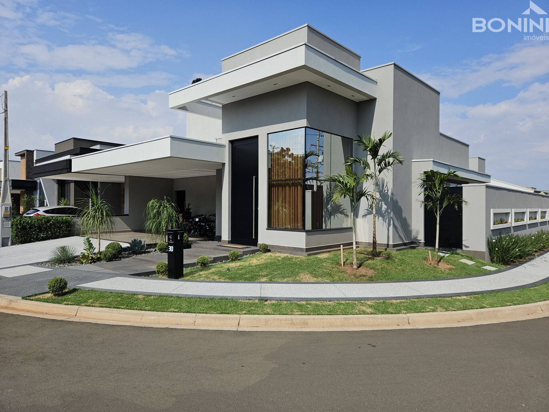 Belíssima casa térrea de alto padrão em condomínio fechado, localizada em terreno de esquina, com arquitetura moderna, excelente iluminação natural e ambientes amplos e integrados. Imóvel totalmente planejado, mobiliado e pronto para morar.