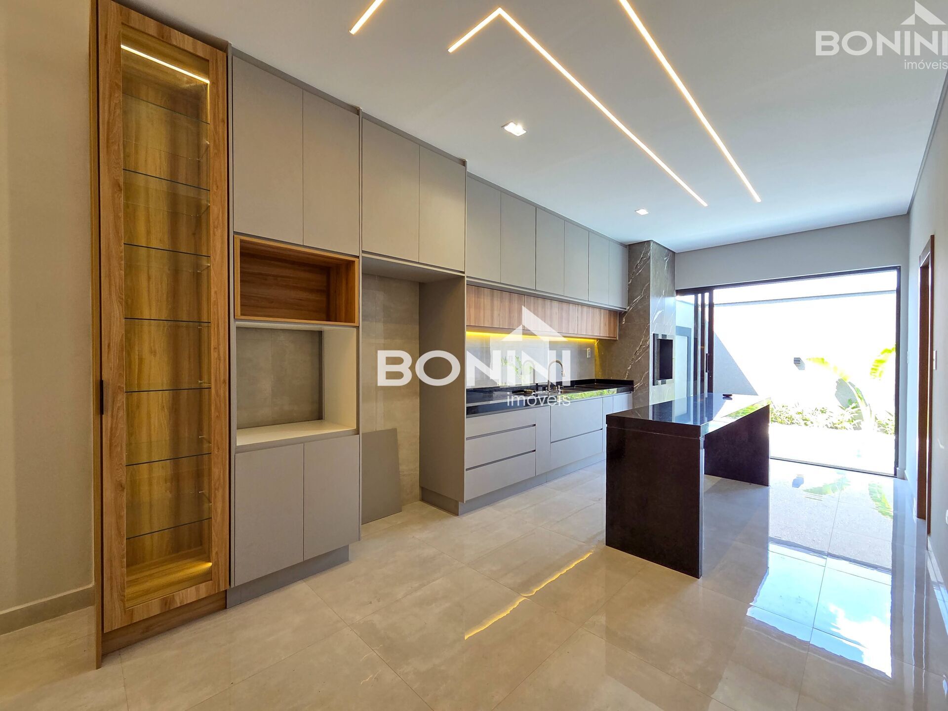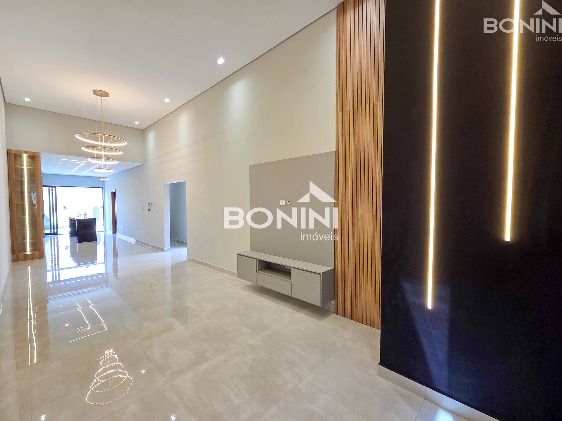 Nova com 3 Dormitórios, sendo 1 suíte, jardim de inverno, ampla sala de tv com painel, sala de jantar, pé direito alto, ambientes integrados, cozinha planejada com ilha e churrasqueira, lavabo, piscina com cascata. Garagem coberta para 2 carros.